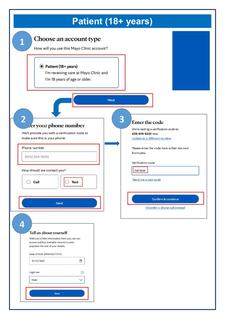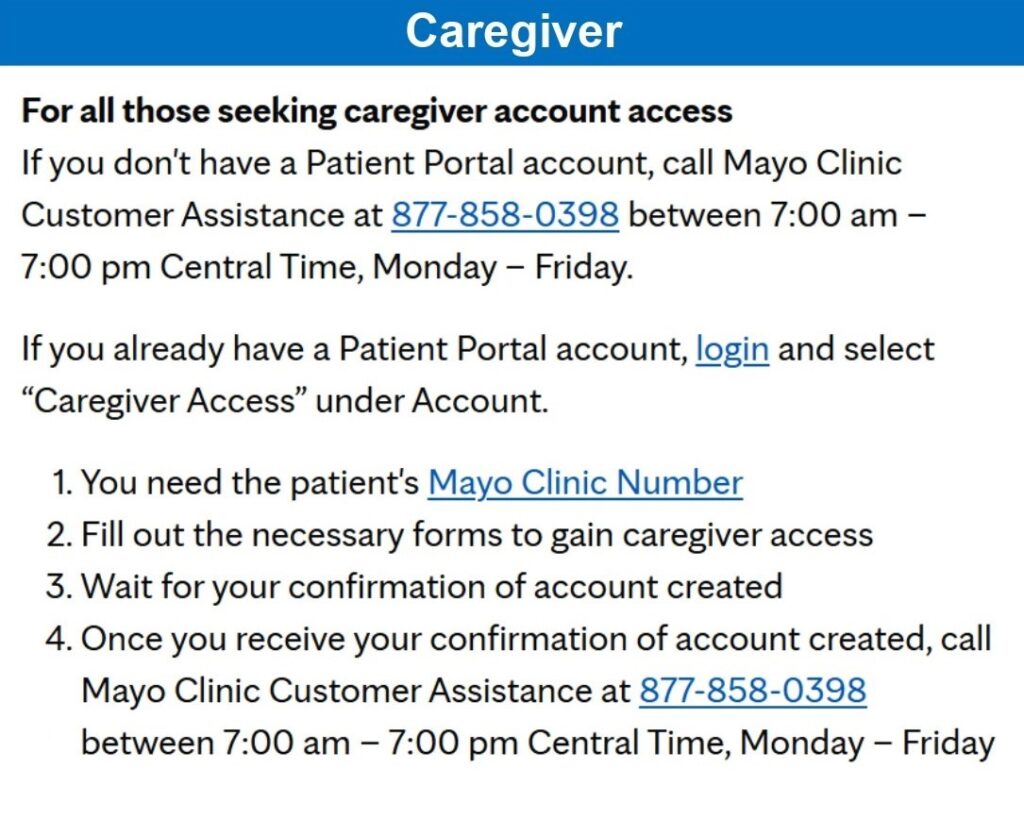 - Patients must first create or receive access to a Mayo Clinic health system patient portal account.